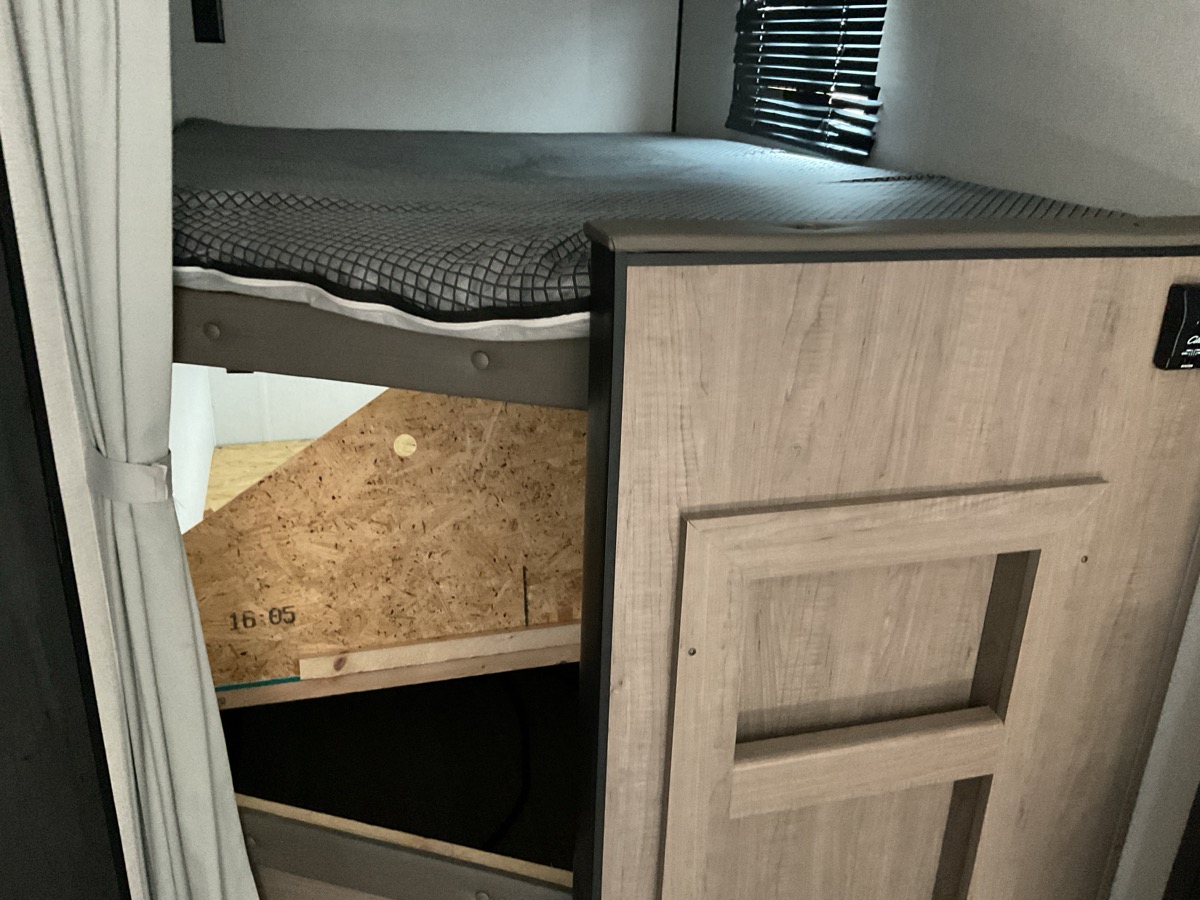Power and lights tested and working. Slides extend properly. Blinds damaged in front bedroom. Propane tanks missing.